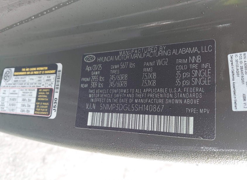 - VIN: 5NMP3DGL5SH140867