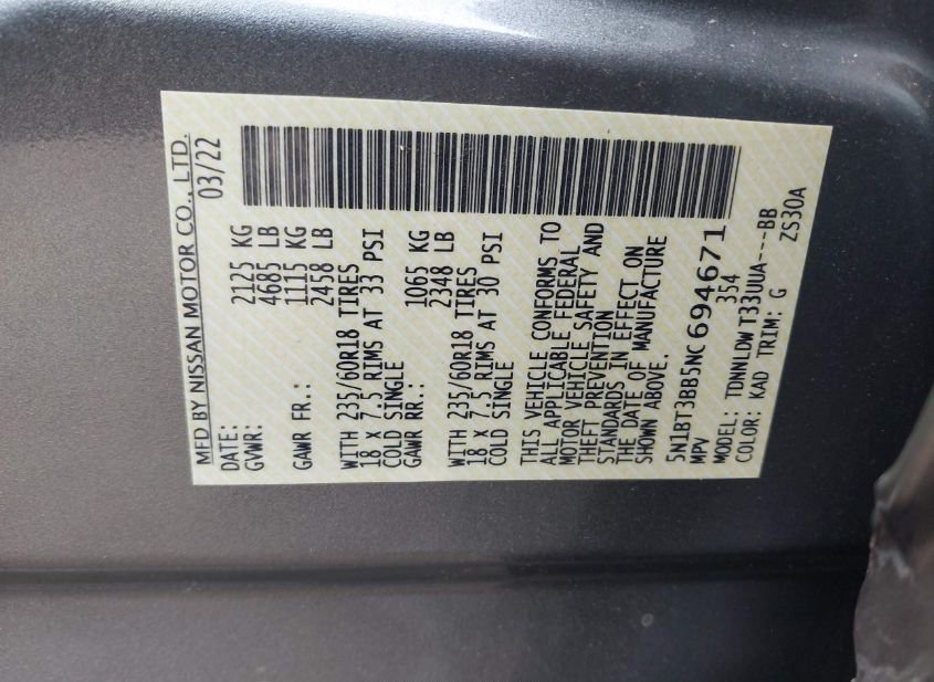 - VIN: 5N1BT3BB5NC694671