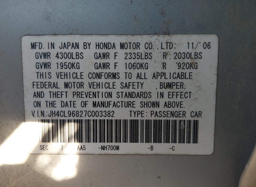 - VIN: JH4CL96827C003382