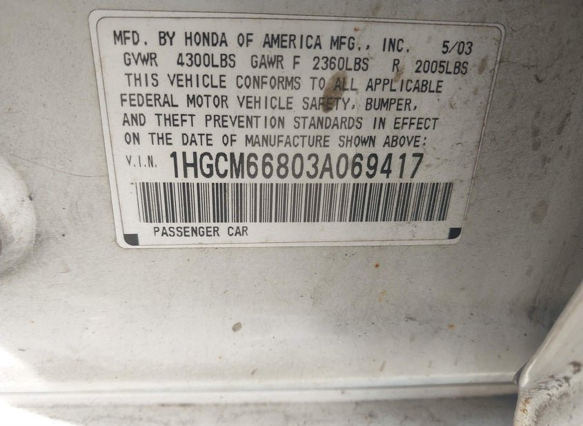 - VIN: 1HGCM66803A069417