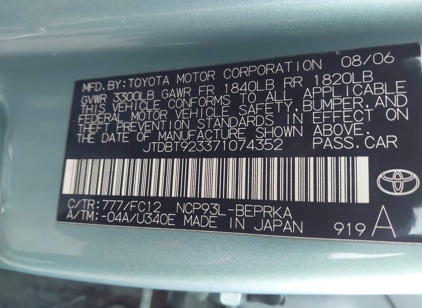 - VIN: JTDBT923371074352
