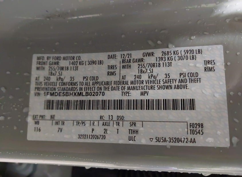 - VIN: 1FMDE5BHXMLB02070
