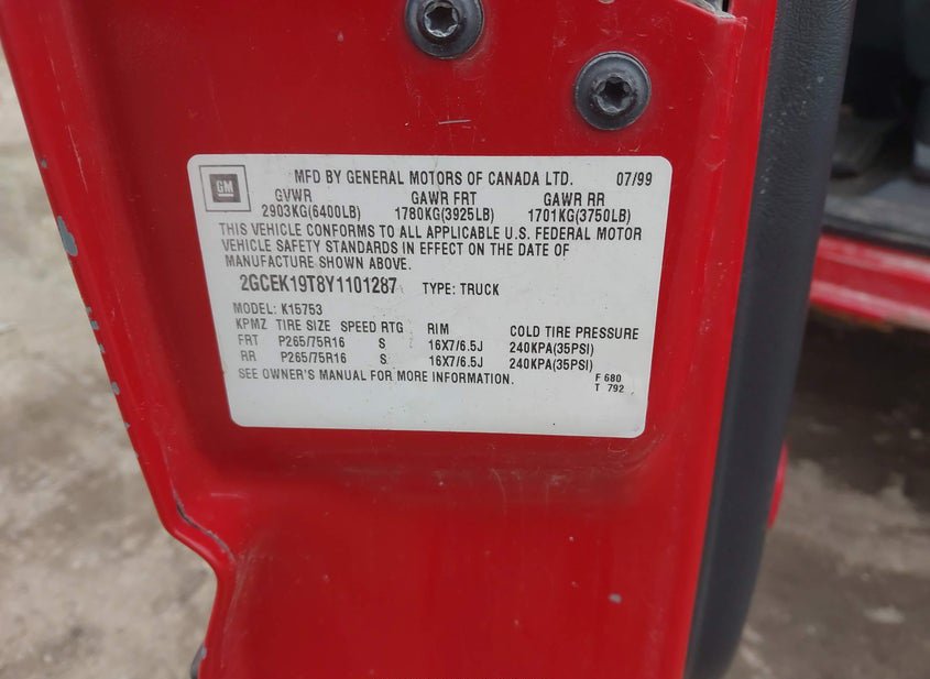 - VIN: 2GCEK19T8Y1101287