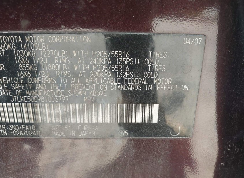 - VIN: JTLKE50E981003797
