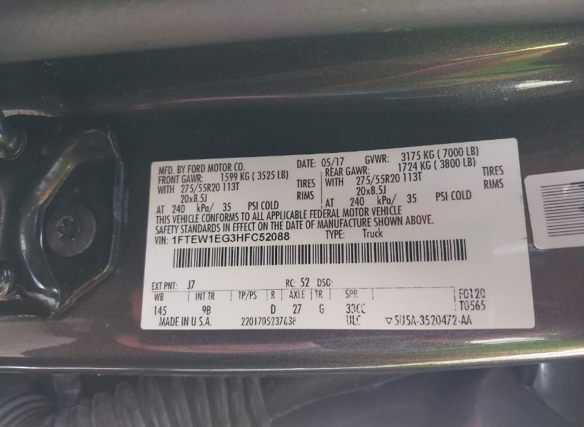 - VIN: 1FTEW1EG3HFC52088