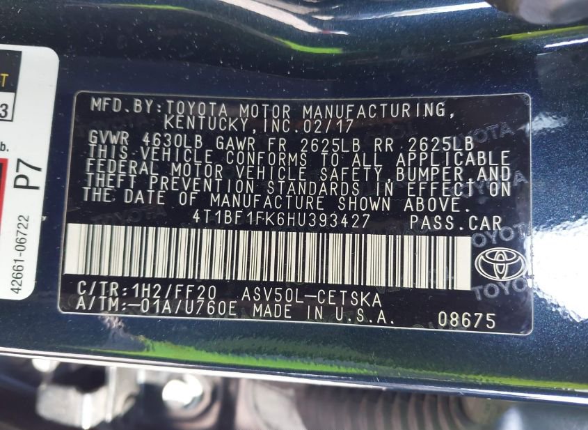 - VIN: 4T1BF1FK6HU393427