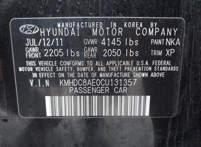 - VIN: KMHDC8AE0CU131357