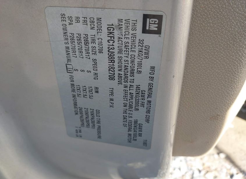 - VIN: 1GKFC13J98R182708