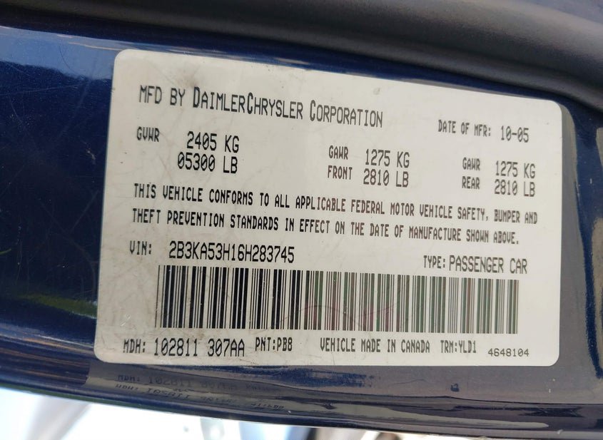 - VIN: 2B3KA53H16H283745