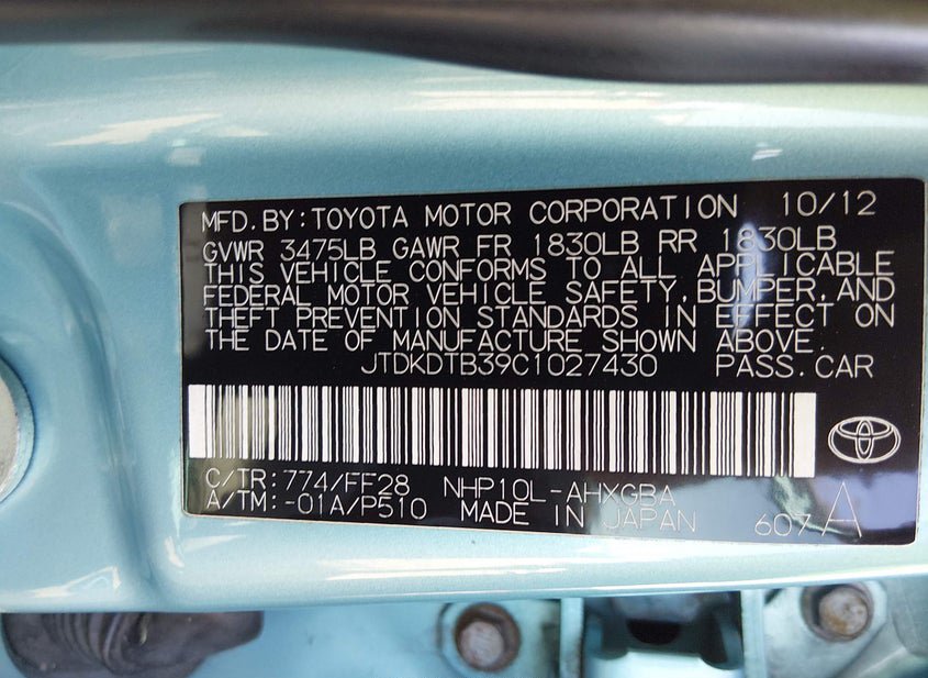 - VIN: JTDKDTB39C1027430