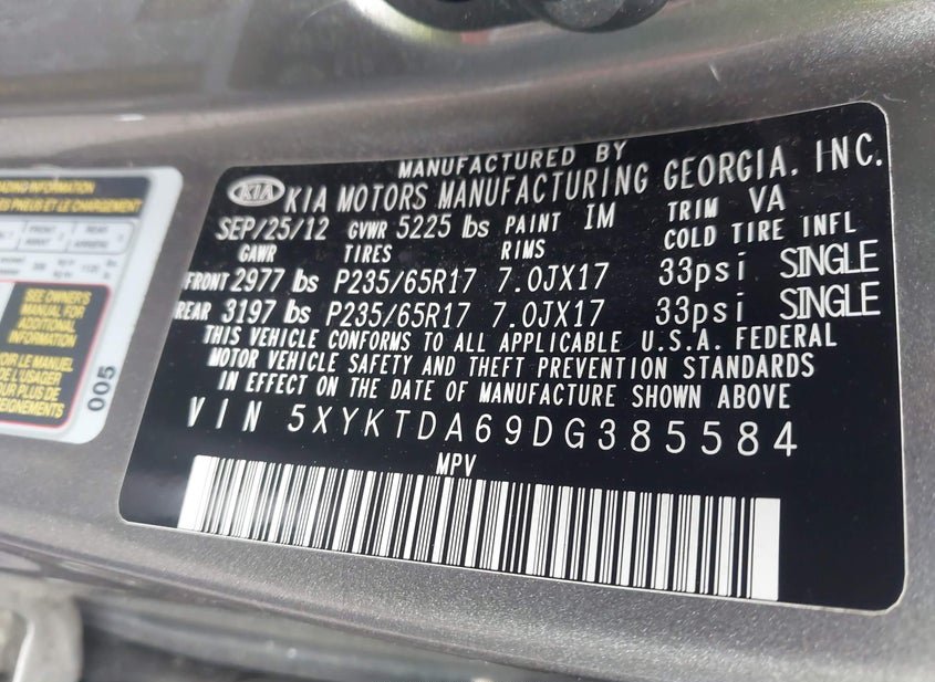 - VIN: 5XYKTDA69DG385584