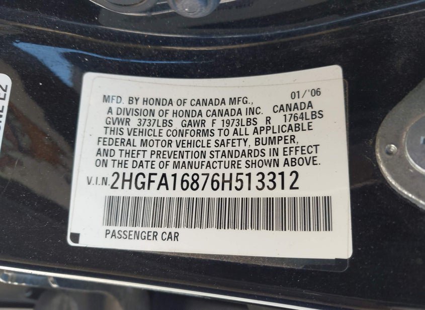 - VIN: 2HGFA16876H513312