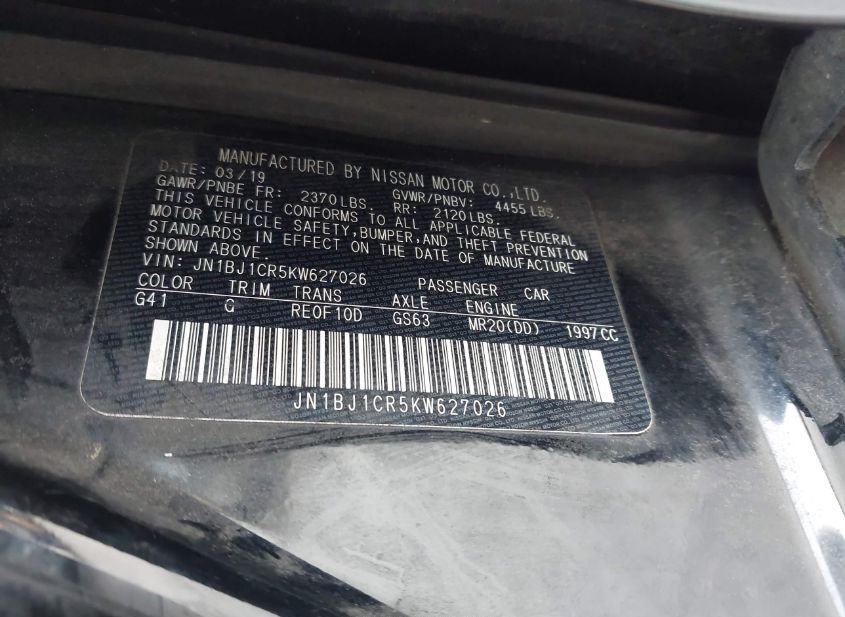 - VIN: JN1BJ1CR5KW627026