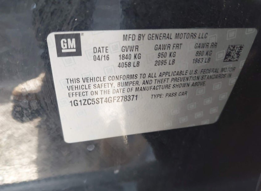 - VIN: 1G1ZC5ST4GF278371