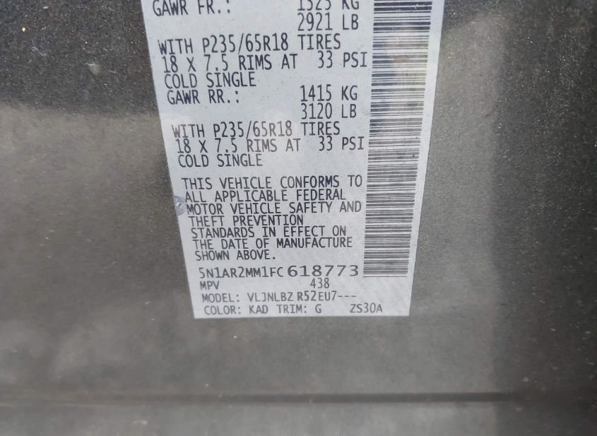 - VIN: 5N1AR2MM1FC618773