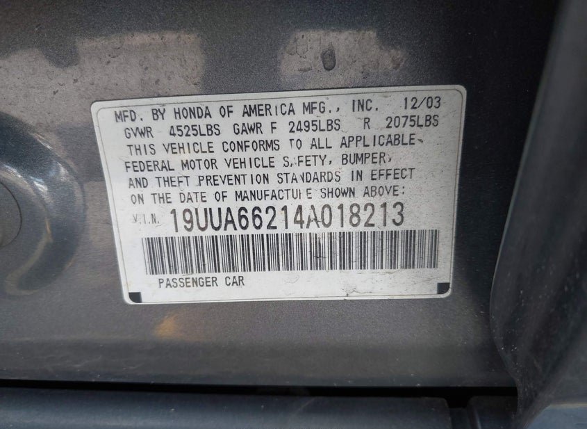 - VIN: 19UUA66214A018213