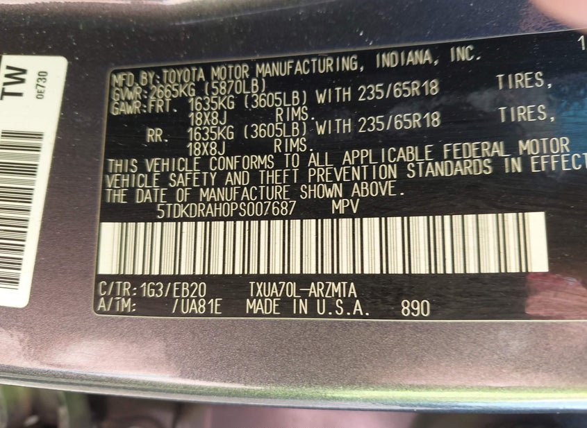 - VIN: 5TDKDRAH0PS007687