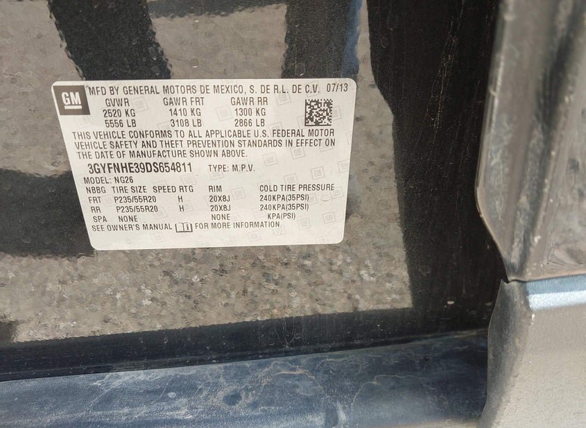 - VIN: 3GYFNHE39DS654811
