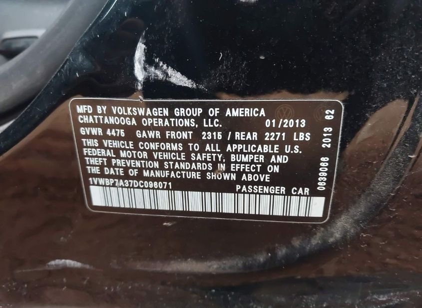 - VIN: 1VWBP7A37DC096071