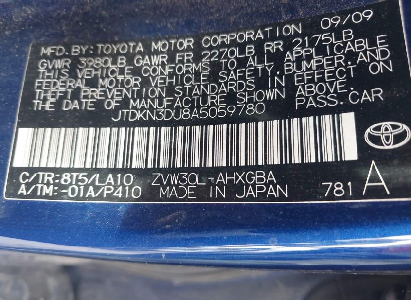 - VIN: JTDKN3DU8A5059780