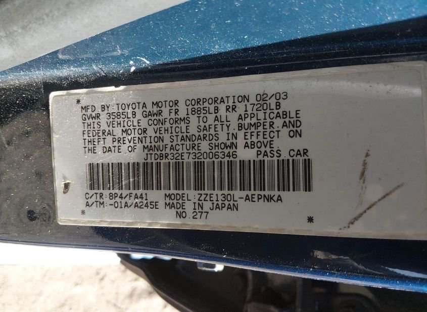 - Название лота: 2003 TOYOTA COROLLA LE