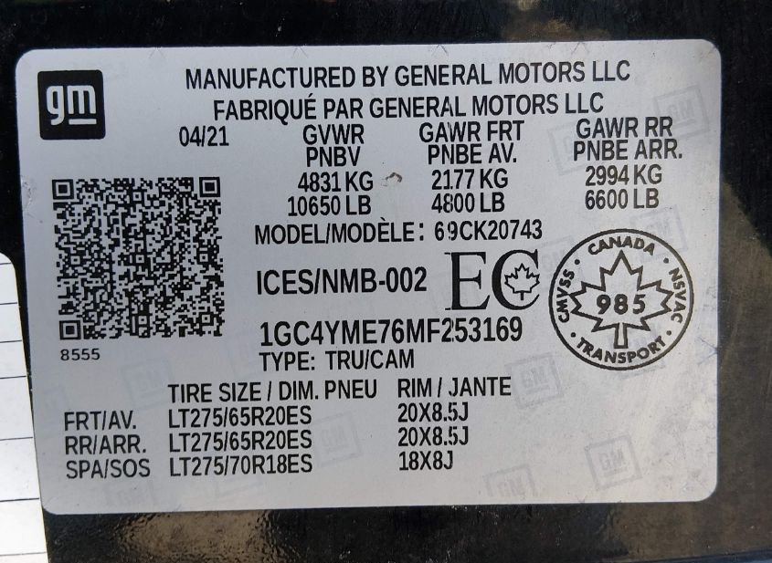- VIN: 1GC4YME76MF253169
