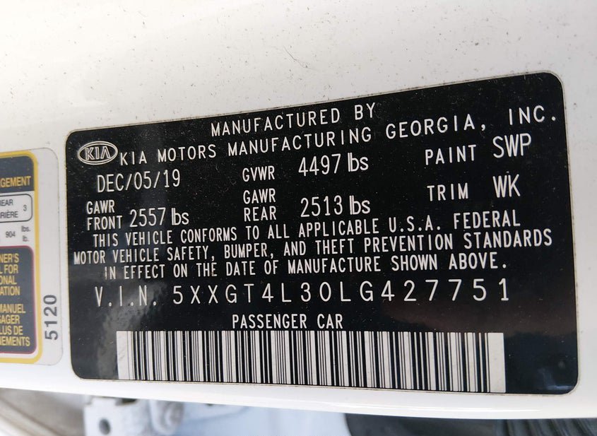 - VIN: 5XXGT4L30LG427751