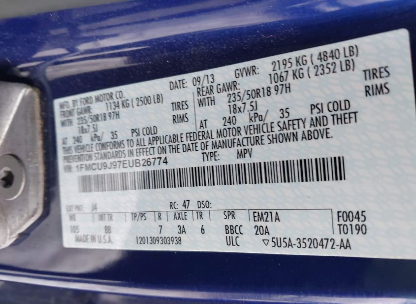 - VIN: 1FMCU9J97EUB26774