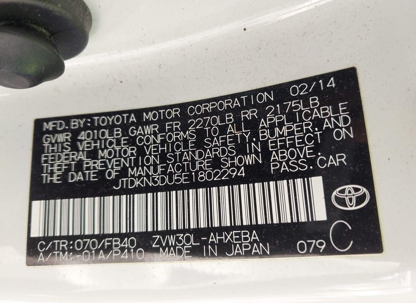 - VIN: JTDKN3DU5E1802294