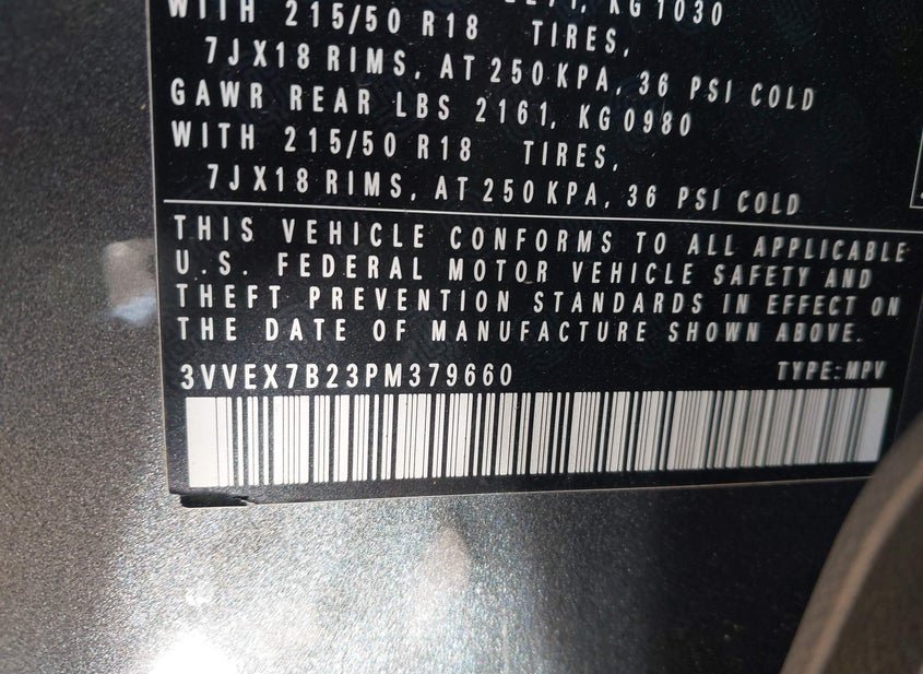 - VIN: 3VVEX7B23PM379660