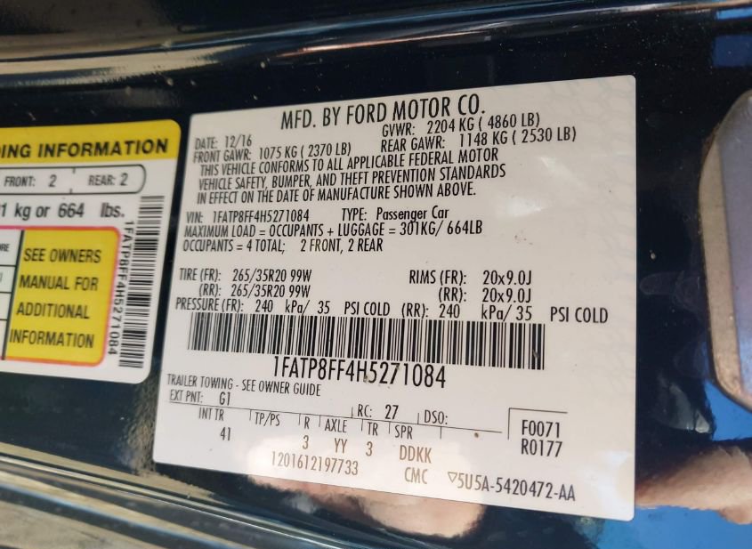 - VIN: 1FATP8FF4H5271084