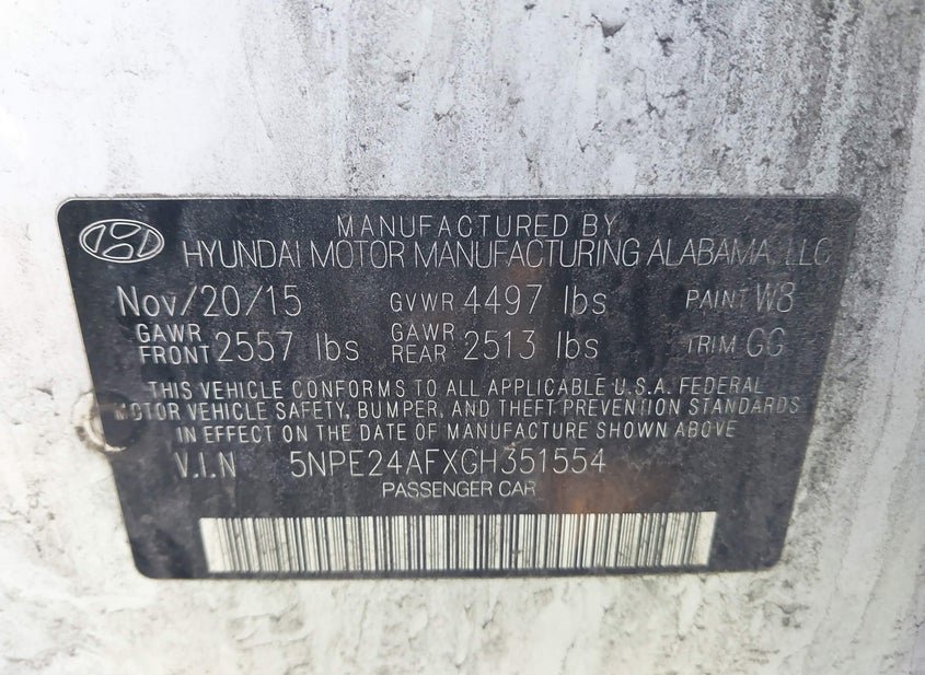 - VIN: 5NPE24AFXGH351554