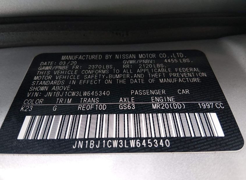 - VIN: JN1BJ1CW3LW645340