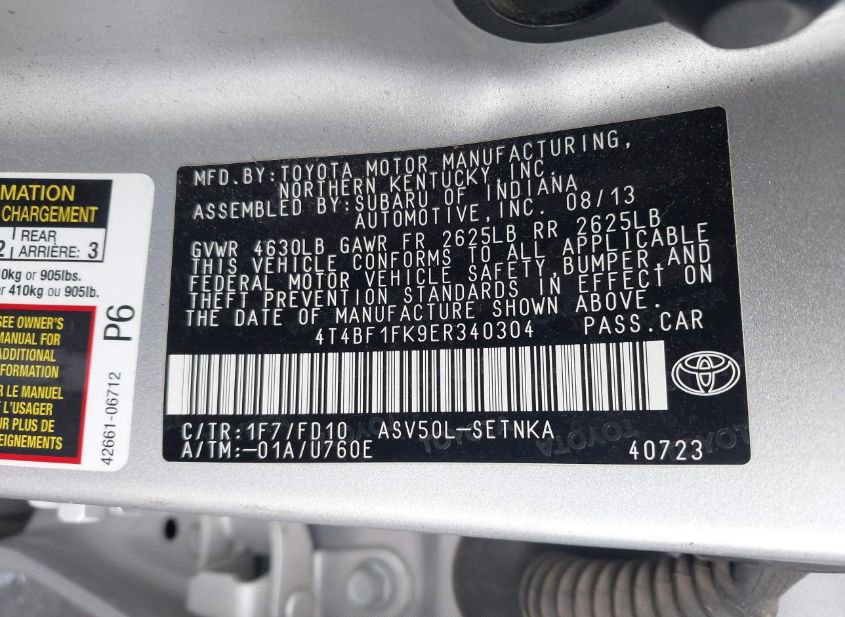 - VIN: 4T4BF1FK9ER340304