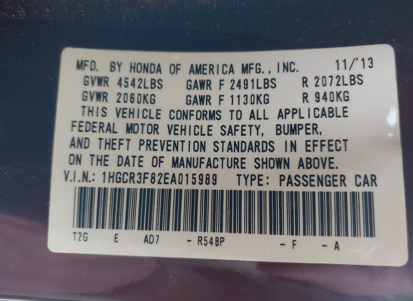 - VIN: 1HGCR3F82EA015989