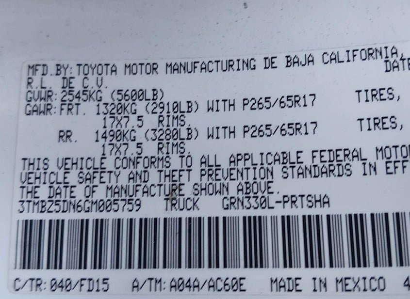 - VIN: 3TMBZ5DN6GM005759