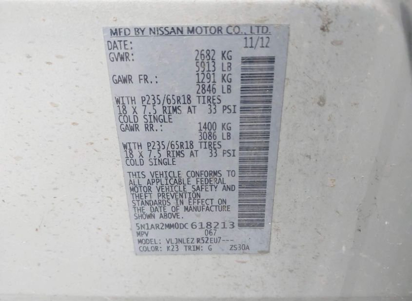 - VIN: 5N1AR2MM0DC618213