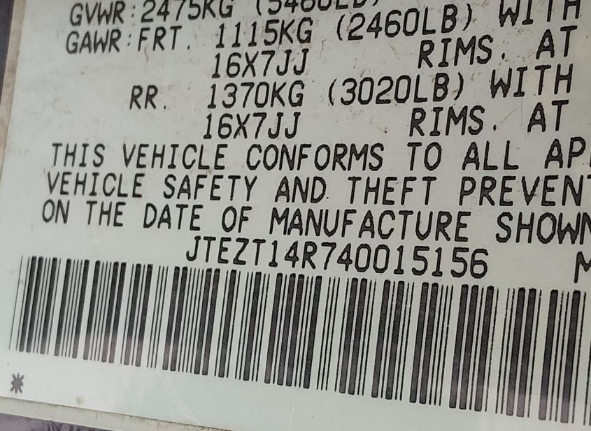 - VIN: JTEZT14R740015156
