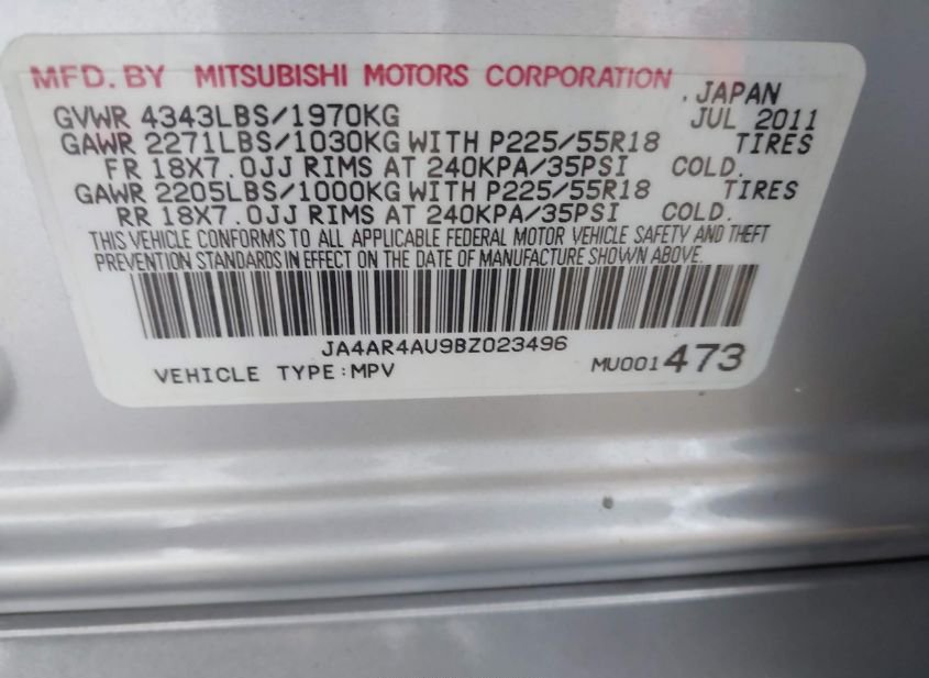 - VIN: JA4AR4AU9BZ023496