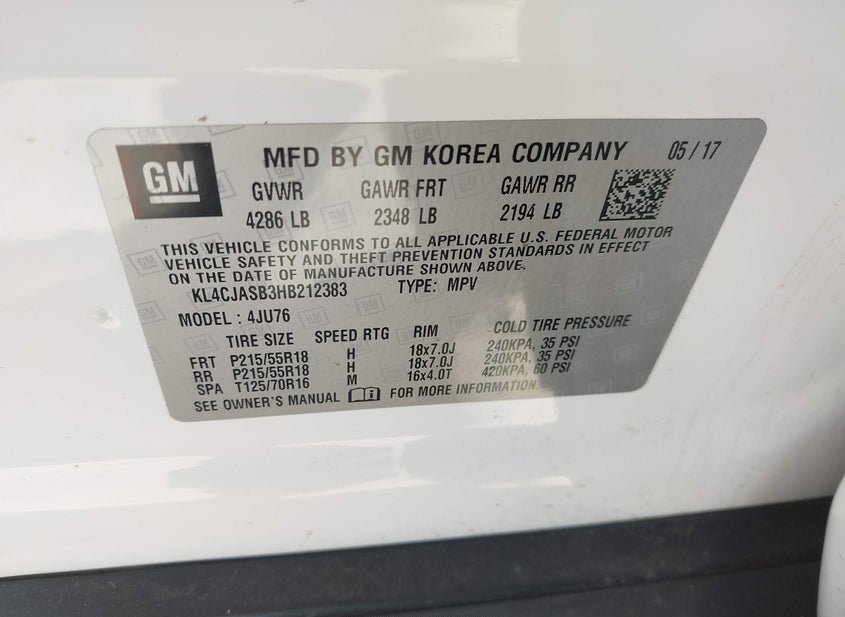 - VIN: KL4CJASB3HB212383