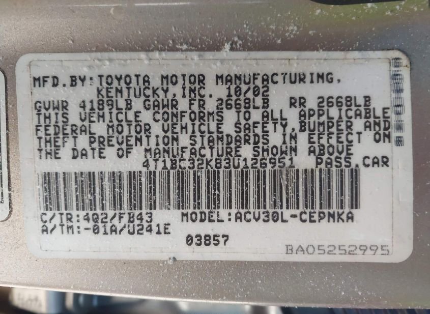 - VIN: 4T1BE32K83U126951