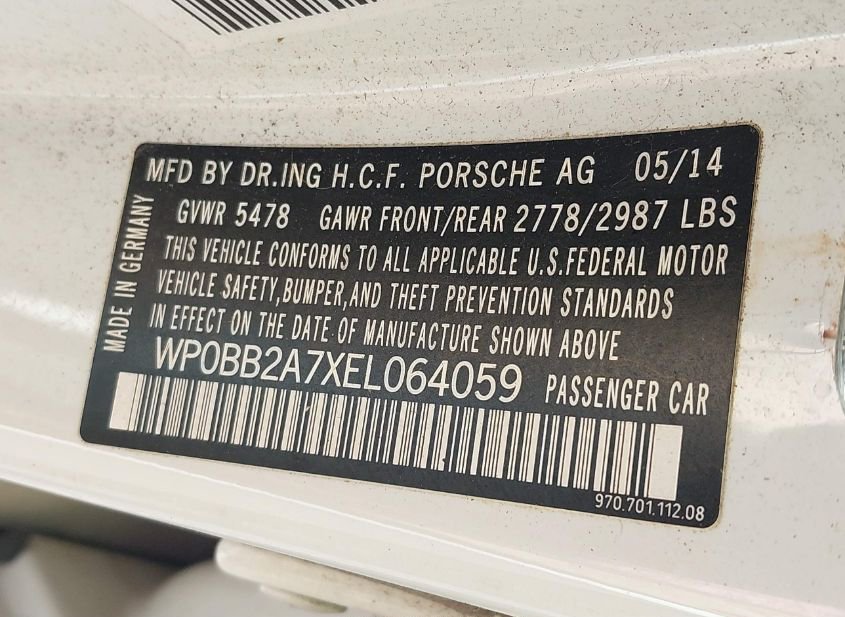 - VIN: WP0BB2A7XEL064059
