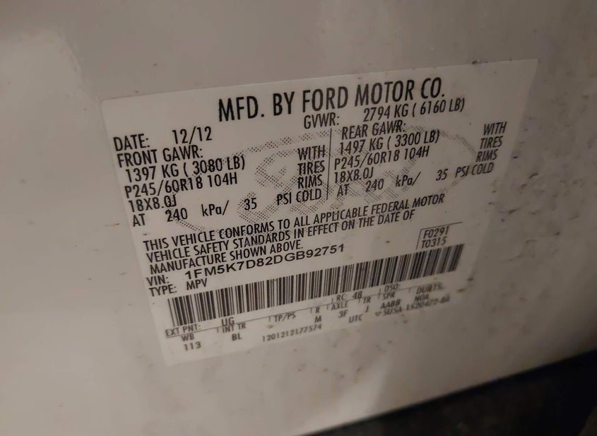 - VIN: 1FM5K7D82DGB92751