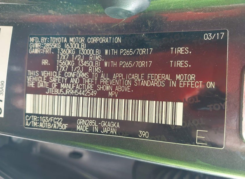 - Название лота: 2017 TOYOTA 4RUNNER TRD OFF ROAD