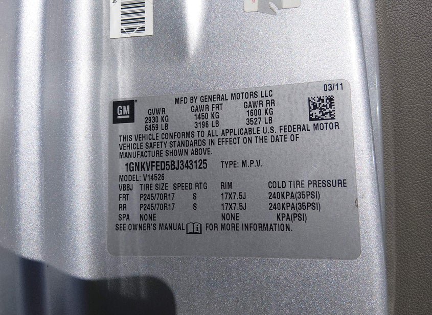 - VIN: 1GNKVFED5BJ343125