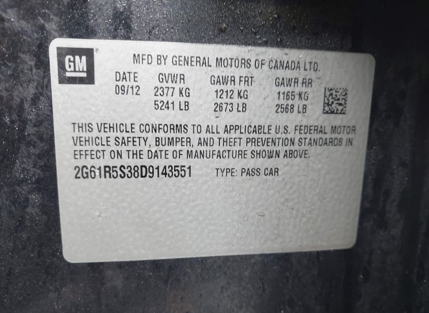 - VIN: 2G61R5S38D9143551
