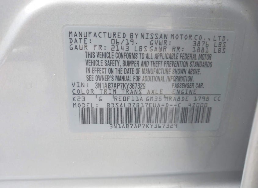- VIN: 3N1AB7AP7KY367329