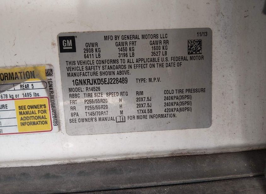 - VIN: 1GNKRJKD5EJ228489