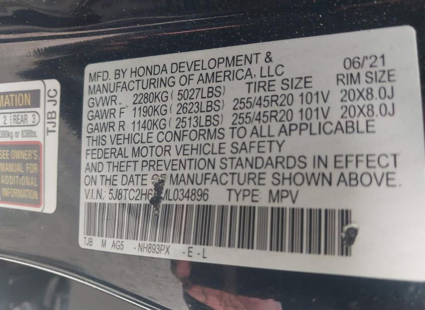 - VIN: 5J8TC2H6XML034896