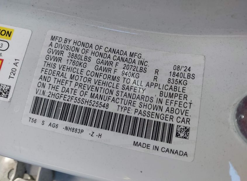 - VIN: 2HGFE2F55SH525548